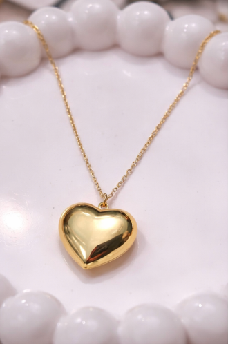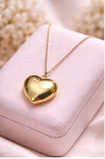 Add a touch of timeless elegance to your everyday look with this Golden Heart Charm Necklace from Violet Vows. Designed with a smooth, glossy heart-shaped pendant and paired with a delicate gold-tone chain, this necklace is perfect for minimal styling and effortless layering.